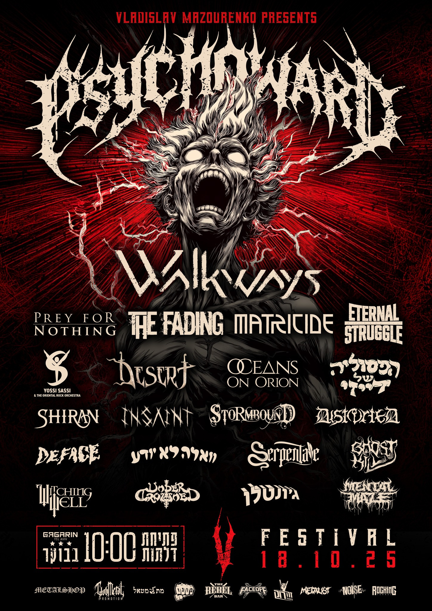 O maior festival de metal de Israel, o " Psycho Ward Festival ", de Vladislav Mazourenko, retorna em 18 de outubro de 2025, com um lineup alucinante que inclui 21 (!!!) bandas, em um evento dedicado à cena metal israelense.