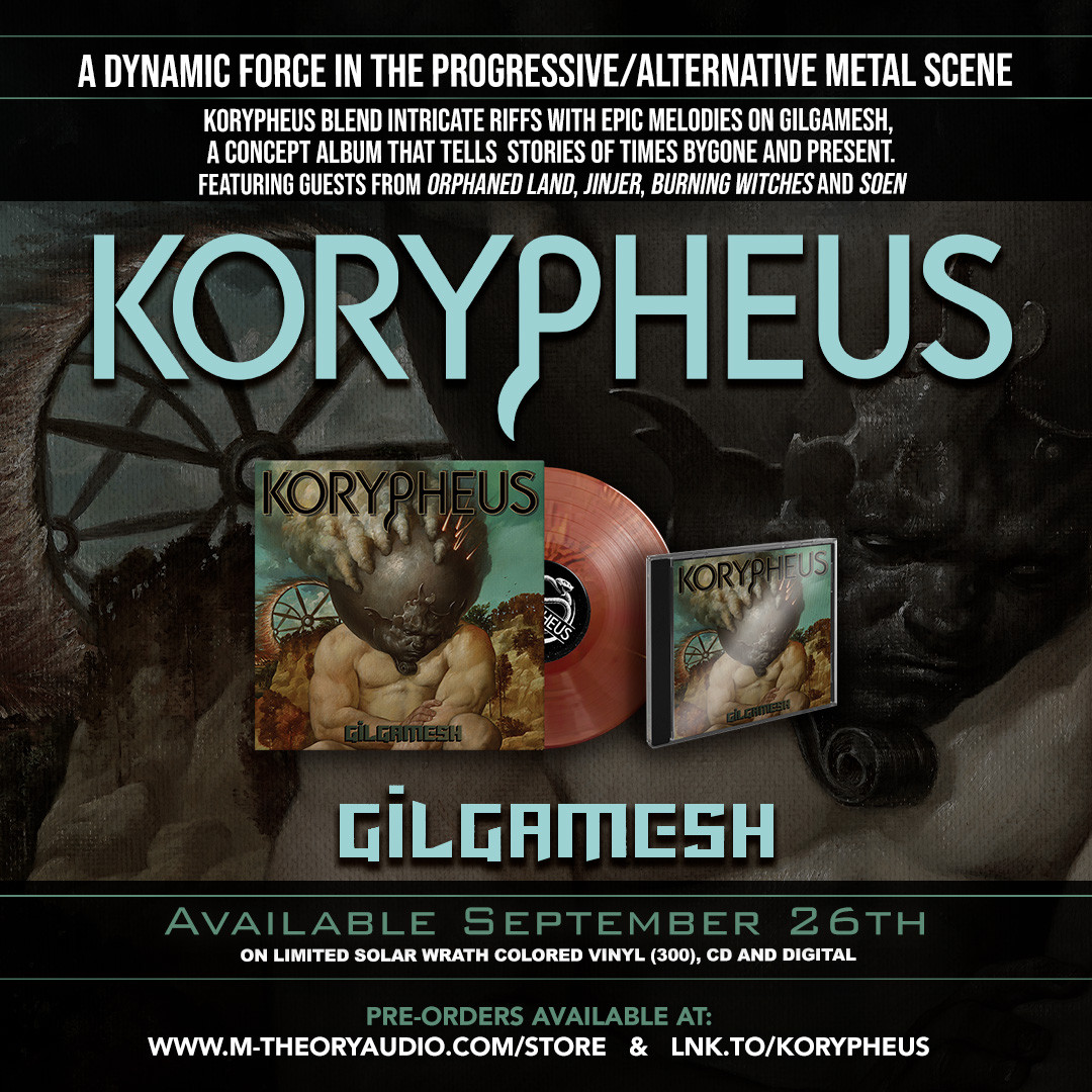 Nas lojas e online a partir de 26 de setembro , 'Gilgamesh' está disponível para pré-venda agora http://lnk.to/korypheus em CD, vinil colorido solar wrath de edição limitada (300) e digital.