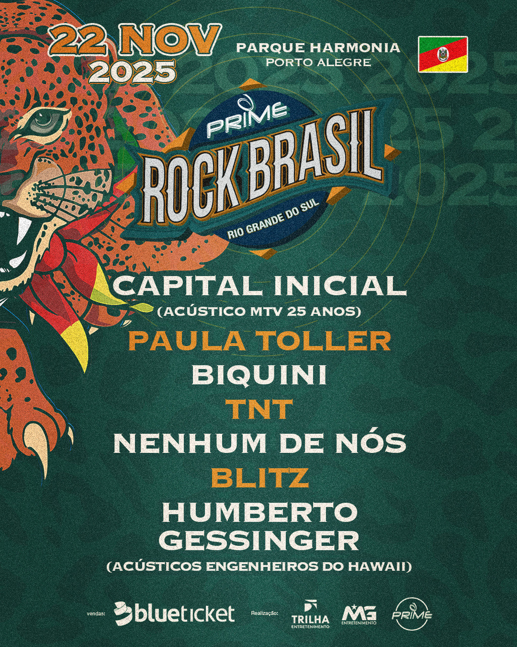 Com sete grandes nomes do rock nacional, o Prime Rock Brasil faz sua estreia em Porto Alegre no dia 22 de novembro, no Parque Harmonia, em um encontro histórico entre gerações e ídolos que marcaram época. Os ingressos custam a partir de R$165,00 e estão disponíveis em blueticket.com.br