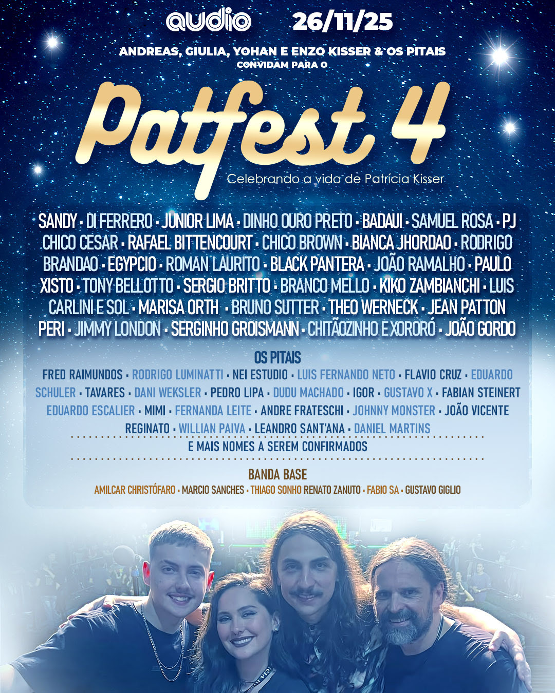 Está chegando o momento de um dos encontros mais tocantes e significativos do calendário musical brasileiro. No próximo dia 26 de novembro, a Audio, em São Paulo, abre suas portas para a quarta edição do Patfest, festival que nasceu do encontro entre música, solidariedade e amor, e que, a cada ano, transforma saudade em potência artística.