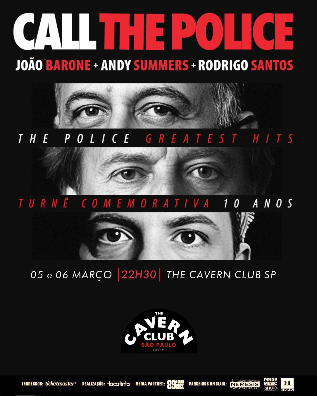 Ver de perto artistas que moldaram a história do rock mundial tornou-se um privilégio cada vez mais raro. Nos dias 5 e 6 de março, o The Cavern Club São Paulo será palco de uma dessas experiências praticamente irrepetíveis. O Call The Police, projeto especial formado por Andy Summers, João Barone e Rodrigo Santos, comemora 10 anos com apresentações, nos dias 5 e 6 de março, na primeira filial do lendário templo da música fora da Inglaterra.