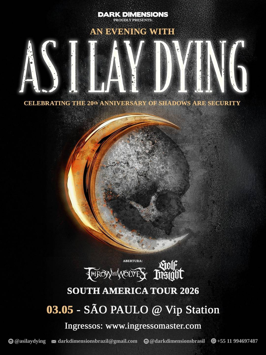 A um mês dos dois shows confirmados no Brasil — em São Paulo (03/05, Vip Station) e Curitiba (04/05, Tork N' Roll), com realização da produtora Dark Dimensions e ingressos disponíveis pela plataforma Ingresso Master (https://ingressomaster.com) —, a As I Lay Dying inicia um novo capítulo de sua trajetória, marcado por reconstrução, reposicionamento e tentativa de reafirmação dentro do cenário global. A passagem pelo país integra a turnê sul-americana "An Evening With As I Lay Dying", que também contempla datas em Lima, Peru (27/04), Santiago, Chile (29/04) e Buenos Aires, Argentina (01/05), consolidando o giro como um dos mais aguardados do metalcore em 2026.