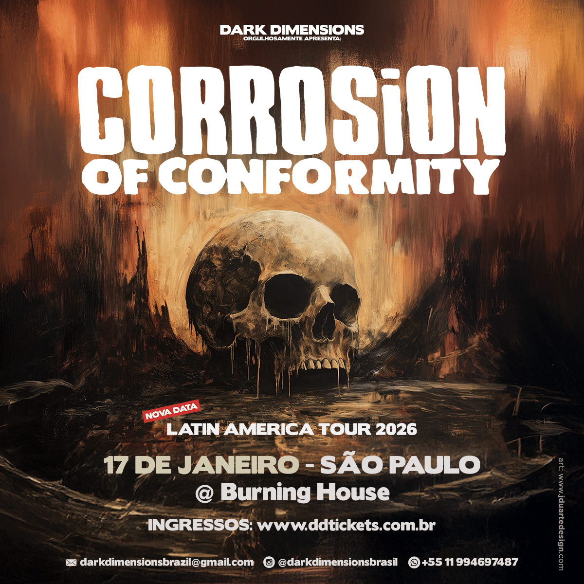 A icônica banda norte-americana Corrosion of Conformity (C.O.C.), um dos pilares do metal sulista e do sludge/stoner metal, retorna à América Latina em janeiro de 2026 para uma aguardada turnê promovida pela produtora Dark Dimensions. A turnê passará pelo México, Chile e Argentina (com dois shows), encerrando-se em São Paulo no dia 17 de janeiro (sábado), na Burning House (@burninghousesp).