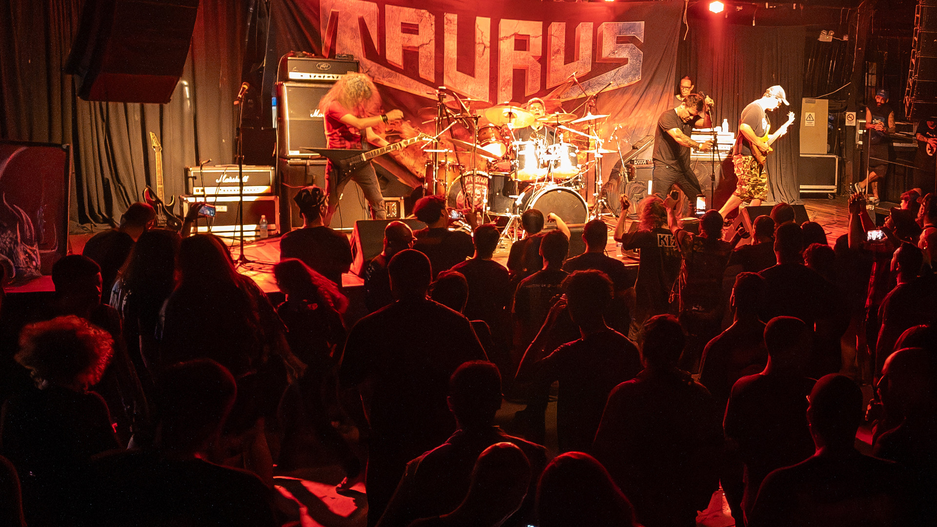 A banda carioca de thrash metal Taurus, formada por Rudi Sgarbi (vocal), Cláudio Bezz (guitarra), Felipe Melo (baixo) e Sérgio Bezz (bateria), segue compondo para o novo álbum, mas também está na estrada com a turnê comemorativa "Taurus 1985", que agora conta com datas no Nordeste. Nos shows, apresenta um set que abrange a discografia completa: "Signo de Taurus" (1986), "Trapped in Lies" (1988), "Pornography" (1989), "Fissura" (2010), "V" (2020) e o single "Lunático" (2023).