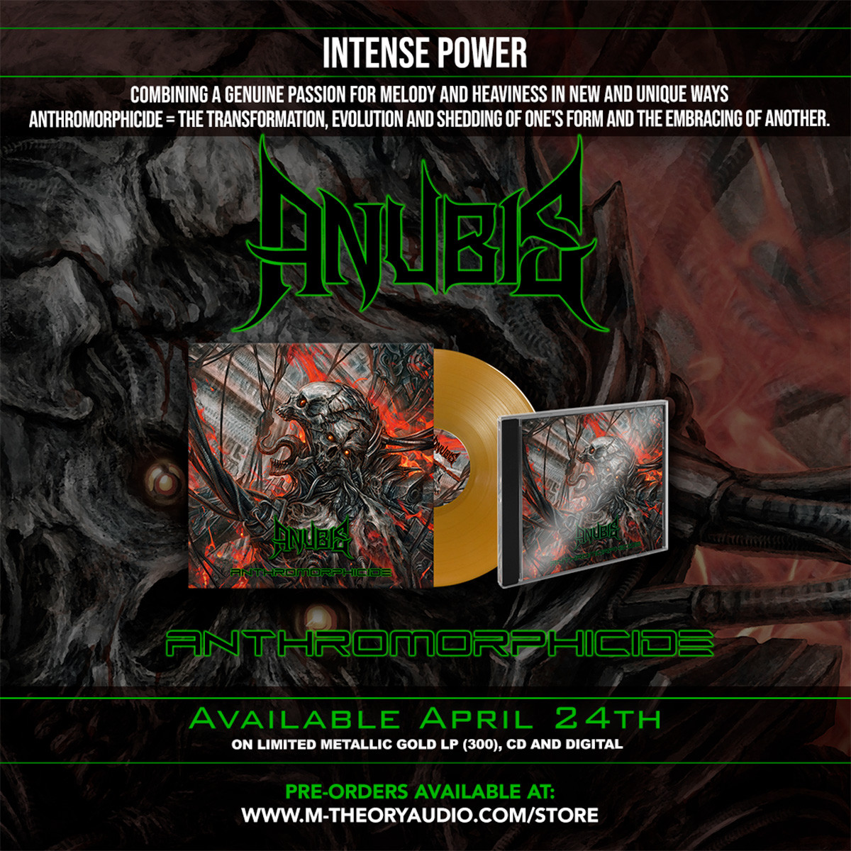 “Nuclear Dawn”, “Fanged Angel” https://www.youtube.com/watch?v=p1FrqYDPkms e o primeiro single “Arcanist” https://youtu.be/iTiH2Q-yIBw?si=uOrX8BKOM-IWcj-5 são faixas do próximo álbum do ANUBIS, 'Anthromorphicide', com lançamento previsto para 24 de abril em CD, vinil dourado metálico de edição limitada (300 cópias) e digital. Faça sua pré-encomenda AQUI www.m-theoryaudio.com/store ou https://anubis10.bandcamp.com/