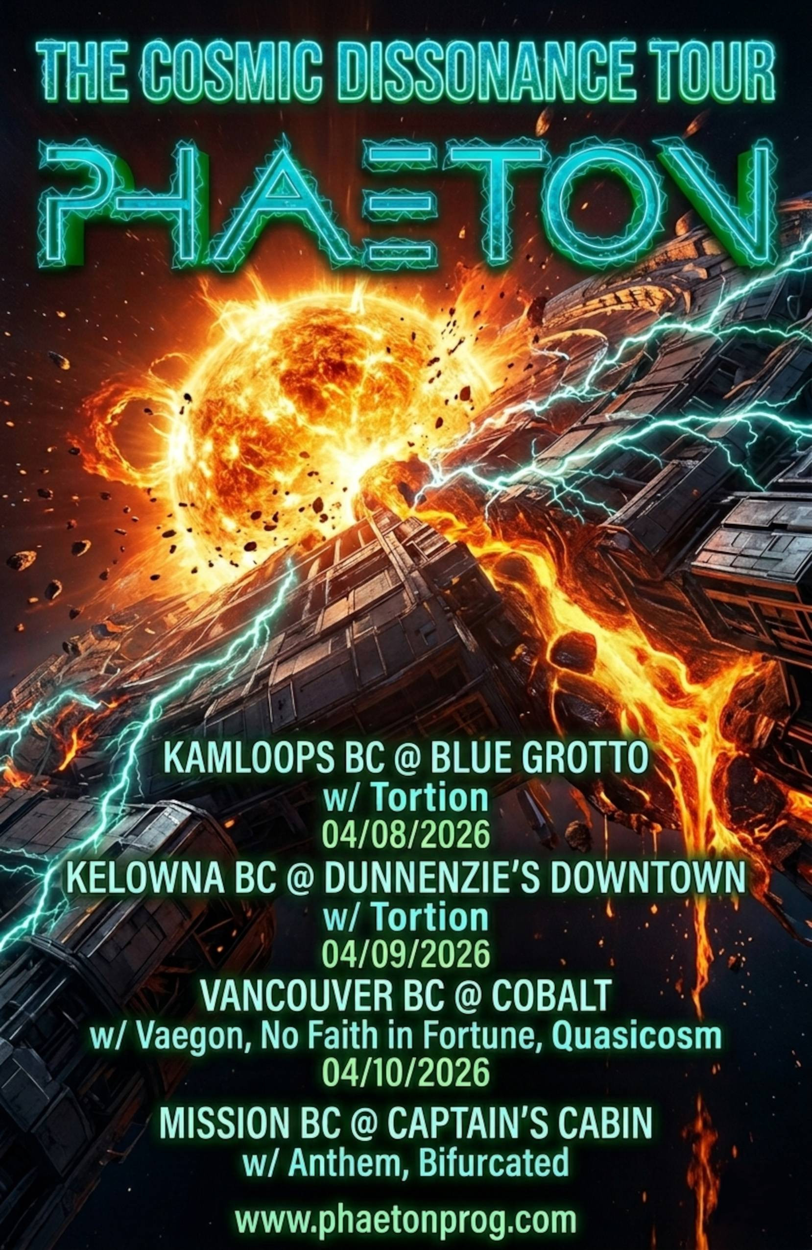 A banda de metal progressivo instrumental PHAETON, da Colúmbia Britânica , está se preparando para a turnê "The Cosmic Dissonance Tour", que acontecerá em 2026 na costa oeste canadense. A turnê promoverá seu terceiro álbum de estúdio, "Neurogenesis", lançado em outubro de 2025. A turnê marca a primeira série de shows prolongados da banda pela província da Colúmbia Britânica desde o lançamento de seu segundo álbum, "Between Two Worlds", em 2020. A expectativa é de uma apresentação eletrizante de seu som em constante evolução, hipermelódico e tecnicamente feroz.
