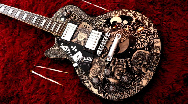 Guitarrista da banda Gypsy Tears e artista plástico, Thiago Valle expõe artes em guitarras personalizadas no Salão de Arte de Paraty
