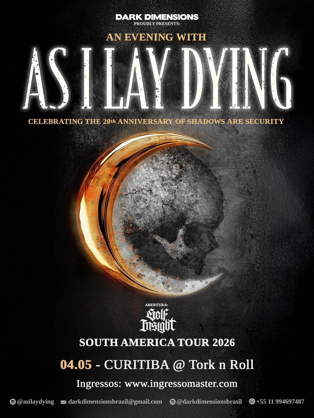 A um mês dos dois shows confirmados no Brasil — em São Paulo (03/05, Vip Station) e Curitiba (04/05, Tork N' Roll), com realização da produtora Dark Dimensions e ingressos disponíveis pela plataforma Ingresso Master (https://ingressomaster.com) —, a As I Lay Dying inicia um novo capítulo de sua trajetória, marcado por reconstrução, reposicionamento e tentativa de reafirmação dentro do cenário global. A passagem pelo país integra a turnê sul-americana "An Evening With As I Lay Dying", que também contempla datas em Lima, Peru (27/04), Santiago, Chile (29/04) e Buenos Aires, Argentina (01/05), consolidando o giro como um dos mais aguardados do metalcore em 2026.