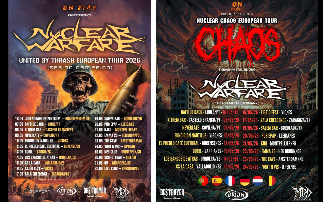 O Nuclear Warfare irá embarcar para uma extensa turnê europeia ao lado da banda indiana Chaos. Serão 20 datas, começando no dia 7 de maio, passando por países como Portugal, Espanha, França, Alemanha, Bélgica, Holanda e Suíça.